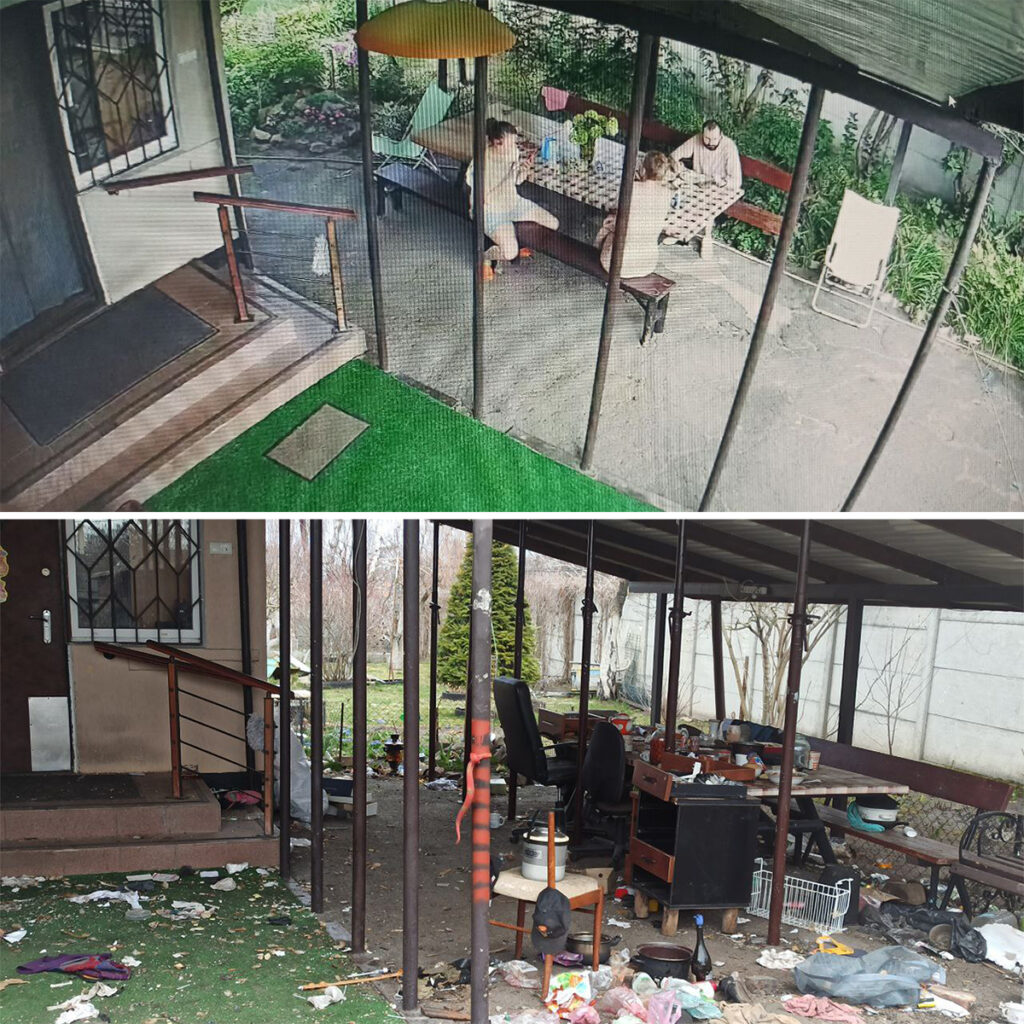 В это время Алёна с Евой выбежали на улицу из погреба и увидели, что горит крыша гостевой кухни. На участке были следы крови, лежало оружие. Военных поблизости видно не было, и, когда Павел тоже вышел из дома, Черкасовы решили попробовать выехать из села.