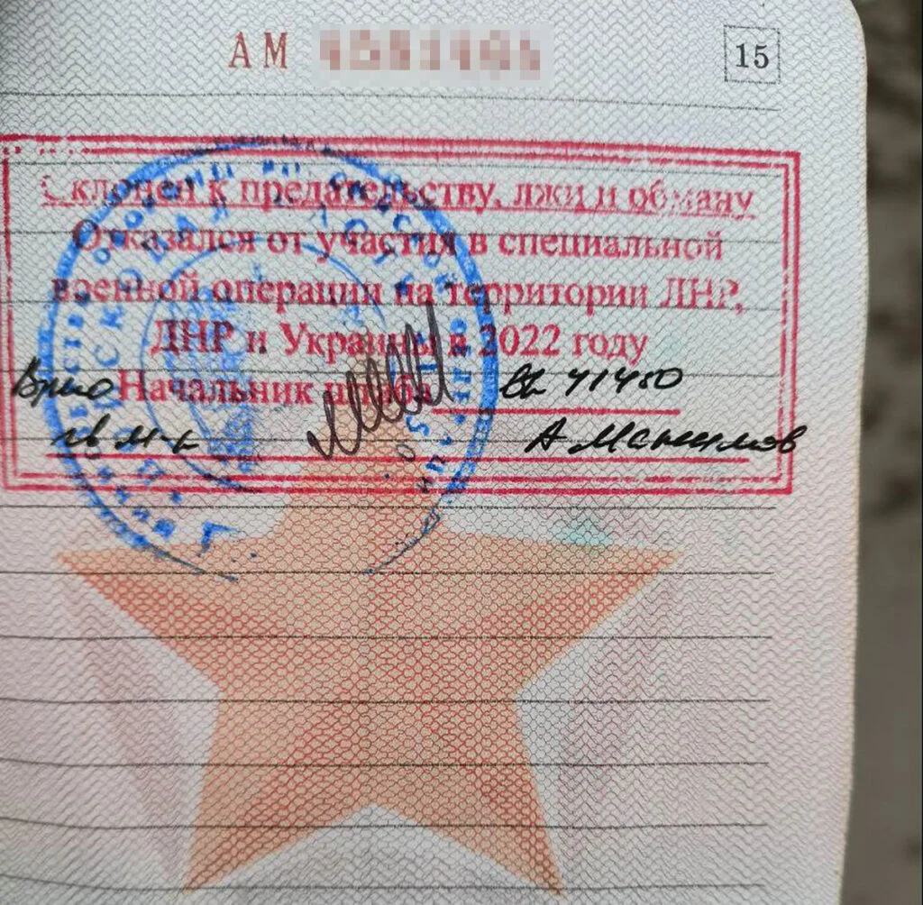 До этого мужчина семь месяцев провёл в командировке в Сирии и рассчитывал на реабилитационный отпуск. Но по возвращении домой его решили отправить в Украину. Контрактник отказался, и его уволили. А начальник отдела кадров поставил в его учётно-послужную карту печать со словами: «Склонен к предательству, лжи и обману. Отказался от участия в специальной военной операции на территории ЛНР, ДНР и Украины».