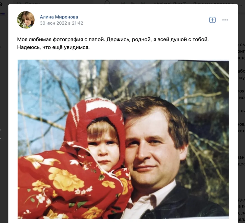 Алина Миронова, дочь Дмитрия Колкера, как и её брат, пыталась привлечь внимание общества к аресту отца.