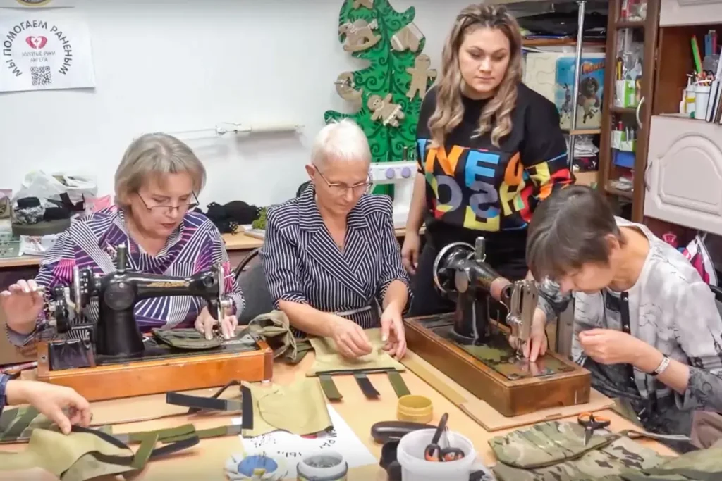 Так, участницы кемеровского отделения волонтёрского движения «Золотые руки ангела» шьют и вяжут для нужд армии в помещении местного культурного центра. В 2023 году участницы кемеровского отделения, по их собственным подсчетам, отшили 2 375 тактических рюкзаков, более 1000 пятиточечников и подсумков, более 500 нашлемников.