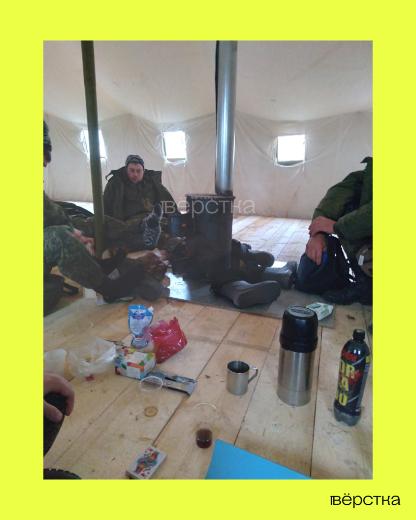 «Понятное дело, на поле боя люди в окопах ночуют, там уже деваться некуда, и мужики стойко это будут переносить, — сказала женщина „Вёрстке“. — Но здесь военная часть, учебные полигоны. Неужели элементарные вещи нельзя устроить?»