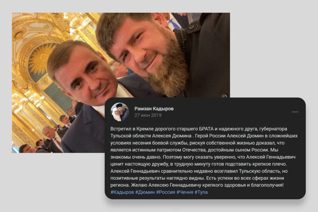«Вёрстка» пыталась связаться с пресс-секретарём Алексея Дюмина Ольгой Кирюниной, но она не ответила на телефонные звонки и сообщение в мессенджере. Пресс-секретарь Кадырова также не ответил на запросы «Вёрстки».