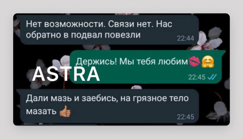 «Им, видимо, по очереди выдают телефоны и разрешают написать, потому что было несколько сообщений от разных мобилизованных. 7 ноября написали, что „все живы, мурыжат в подвале“. В таком духе», — говорит «Вёрстке» родственница одного из военных.