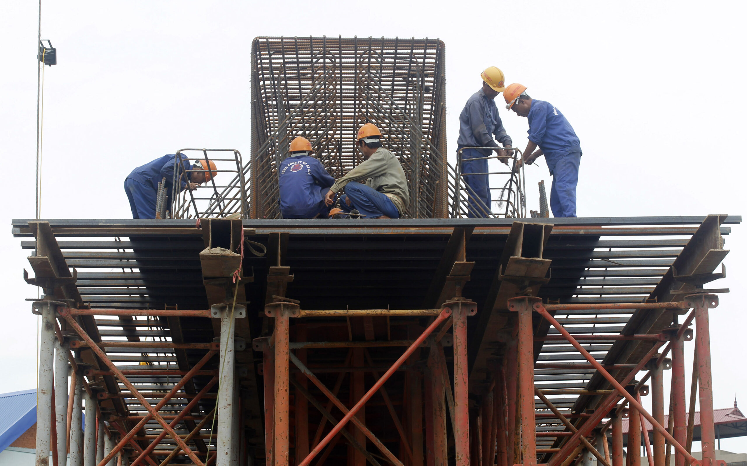 Фото: Рабочие из Вьетнама возводят строительные конструкции в Ханое. REUTERS