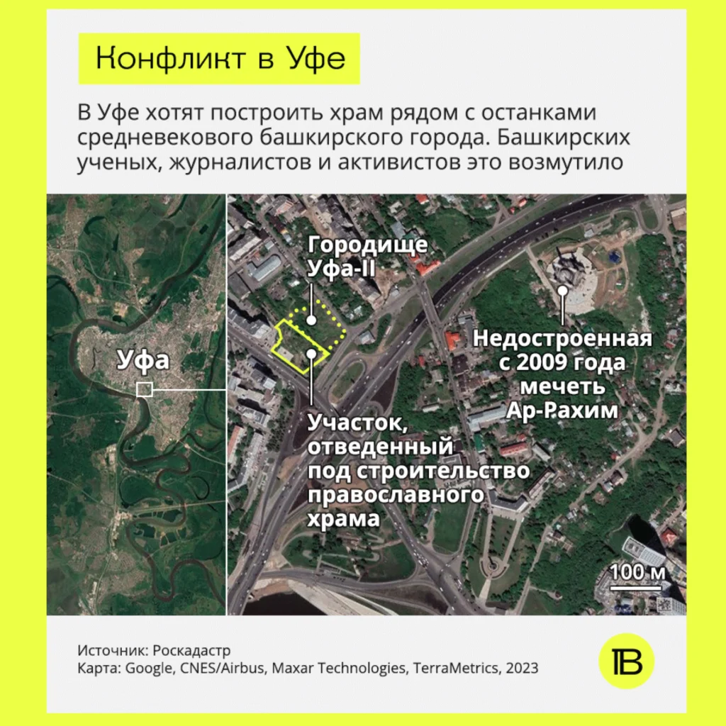 В столице Башкортостана Уфе власти хотят построить большой православный храм на въезде в город. Это возмутило местных жителей. Одну из противниц строительства храма — башкирскую националистку Рамилю Саитову — арестовали через несколько дней после того, как она съездила на стройку и сняла там видеоролик. Противники строительства напоминают, что власти так и недостроили мечеть «Ар-Рахим», которая должна была стать самой большой в России и Европе. Они также опасаются, что новый храм создаст угрозу для древнего археологического памятника — он будет вплотную прилегать к останкам средневекового башкирского города. «Вёрстка» рассказывает, что происходит.