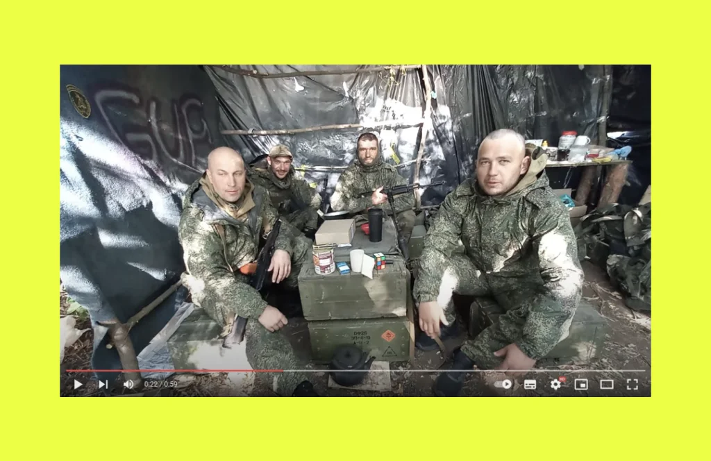 «Салам алейкум, комяки. С вами Саня Вулдымарктум. Чё могу рассказать? Всё хорошо, всё отлично. Попались немножко. Ранило, задело в бою. Щас выздоравливаем. В принципе, всё уже почти. <…> Ну, вы там тоже держитесь», — обращается к другим заключённым мужчина, сидя на кровати, предположительно, в госпитале.
